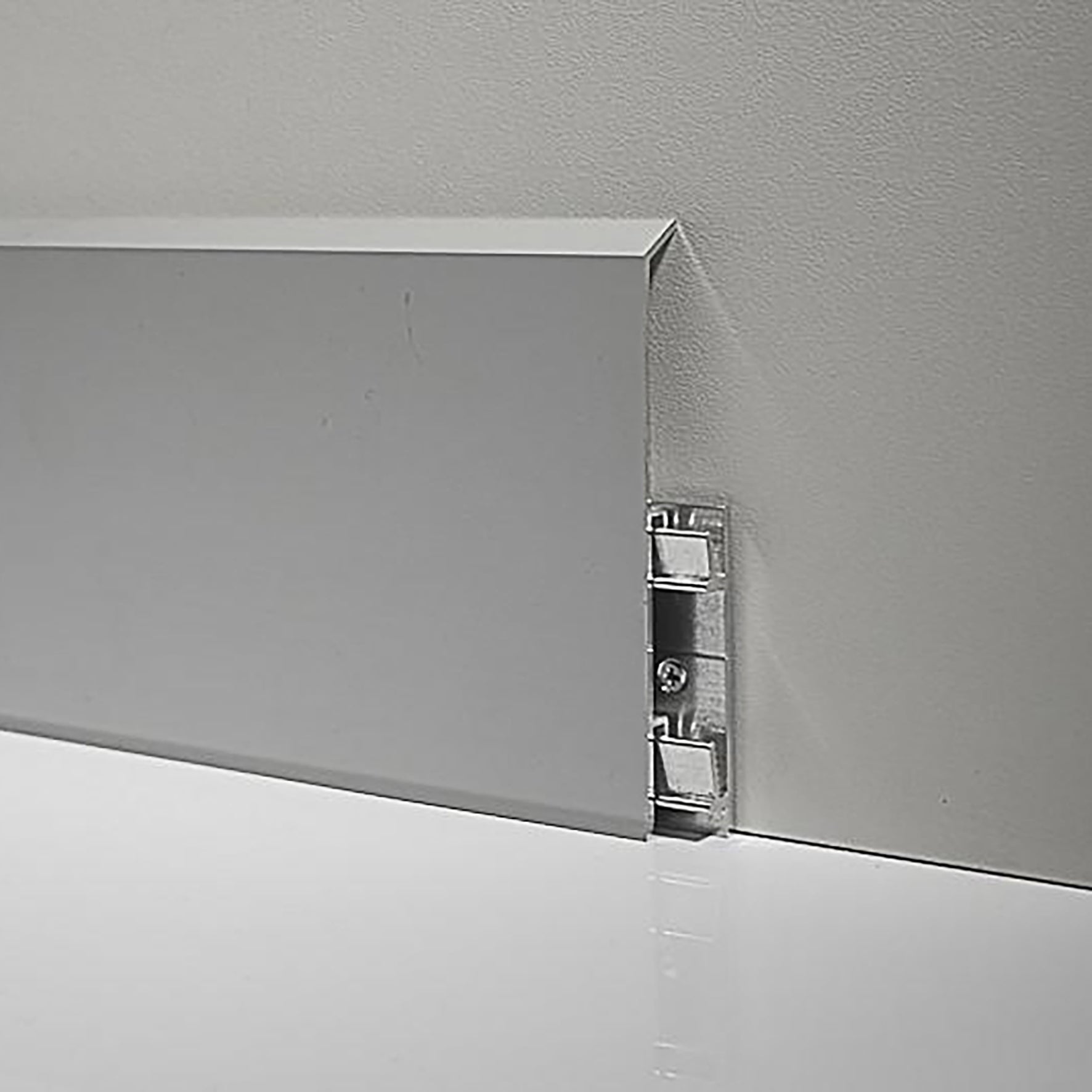 Listwa cokołowa METAL LINE 95 wykonane jest z aluminium. Oferujemy ją w dwóch różnych wysokościach - 7 i 9 cm. Każda listwa posiada trzy wsporniki z aluminium naturalnego, które przymocowane do ściany za pomocą wkrętów i kołków, ułatwiają dostęp do przewodów elektrycznych.